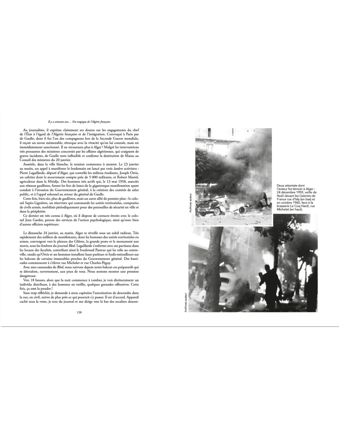 Il reprend alors son job de reporter dans la grande presse pour, au cœur d’une actualité ordinaire, couvrir notamment les émeutes qui ensanglantent Paris, les actions violentes de l’OAS, les grands procès des généraux et des « militaires perdus ». Après les accords d’Évian en mars 1962, son journal le renvoie en Algérie pour rendre compte des drames inimaginables qui ont suivi le cessez-le-feu : bouclage de Bab-el-Oued, fusillade de la rue d’Isly, exode tragique des Français d’Algérie, curée anti-européenne du 5 juillet à Oran, massacre des harkis.