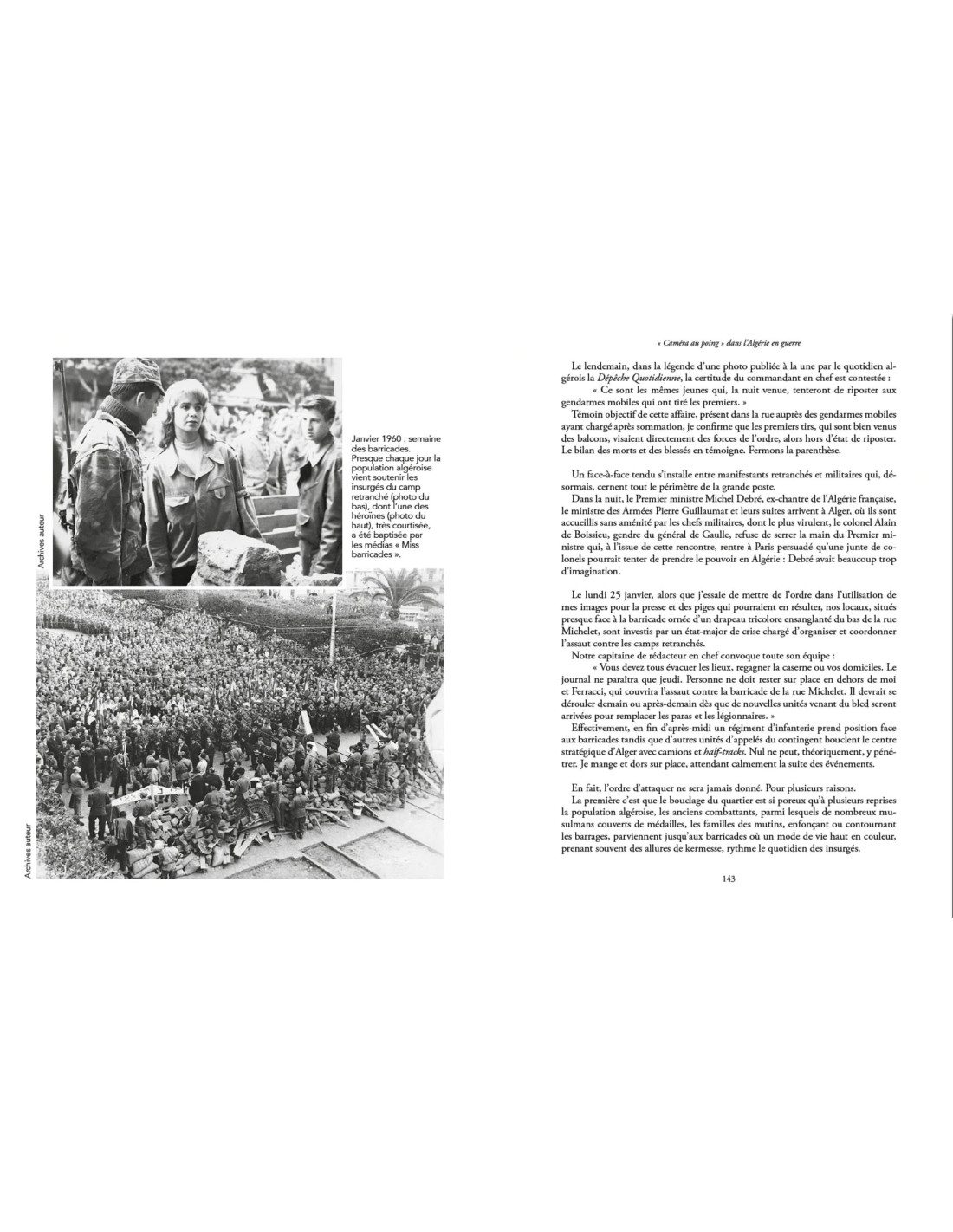 Cette chronique vivante d’une époque mouvementée, qui prend parfois des allures de roman, offre au lecteur un point de vue unique : celui d’un jeune reporter, civil et militaire, dont on découvre la vie quotidienne au cœur d’événements que les générations qui ne les ont pas vécus découvriront soixante ans après. Ceux qui les ont traversés douloureusement s’y retrouveront.