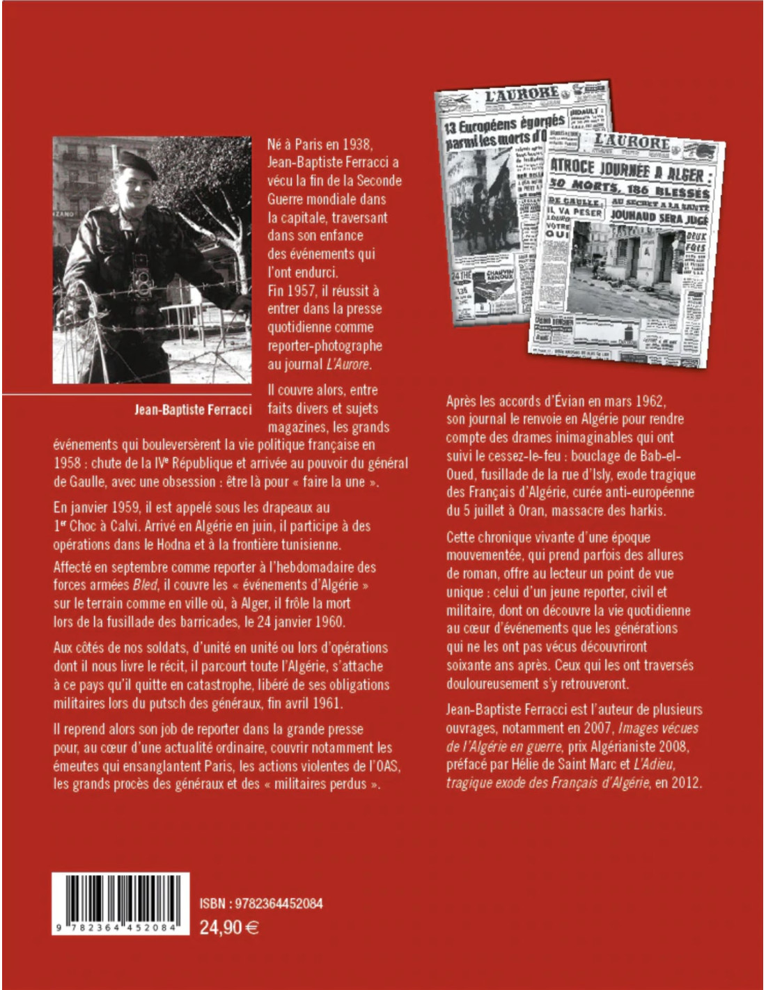 Jean-Baptiste Ferracci est l’auteur de plusieurs ouvrages, notamment en 2007, Images vécues de l’Algérie en guerre, prix Algérianiste 2008, préfacé par Hélie de Saint Marc et L’Adieu –1962 : Le tragique exode des Français d’Algérie, en 2012.