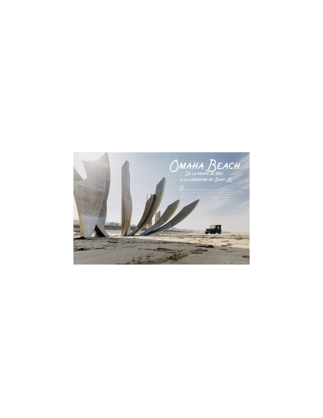 Alice Bertrand photographe et Claire Larquemain auteure parcourent les cinq secteurs alliés du Débarquement : Utah, Omaha, Gold, Juno et Sword Beach. La Jeep « gris navy » les emmène depuis Sainte-Mère-Église dans le Cotentin – le village des parachutistes américains -, jusqu’au célèbre pont de Pegasus Bridge à Bénouville, dans le Calvados.