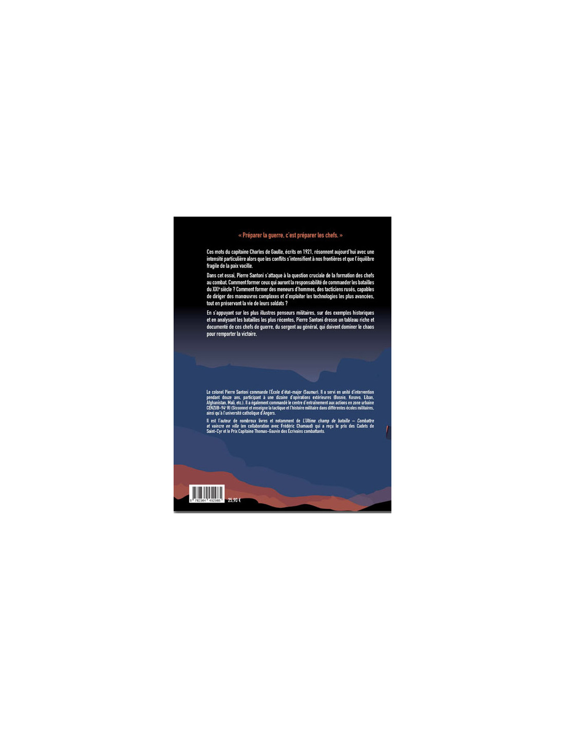 Dans cet essai, Pierre Santoni s'attaque à la question cruciale de la formation des chefs au combat. Comment former ceux qui auront la responsabilité de commander les batailles du XXIe siècle ? Comment former des meneurs d'hommes, des tacticiens rusés, capables de diriger des manoeuvres complexes et d'exploiter les technologies les plus avancées, tout en préservant la vie de leurs soldats ?