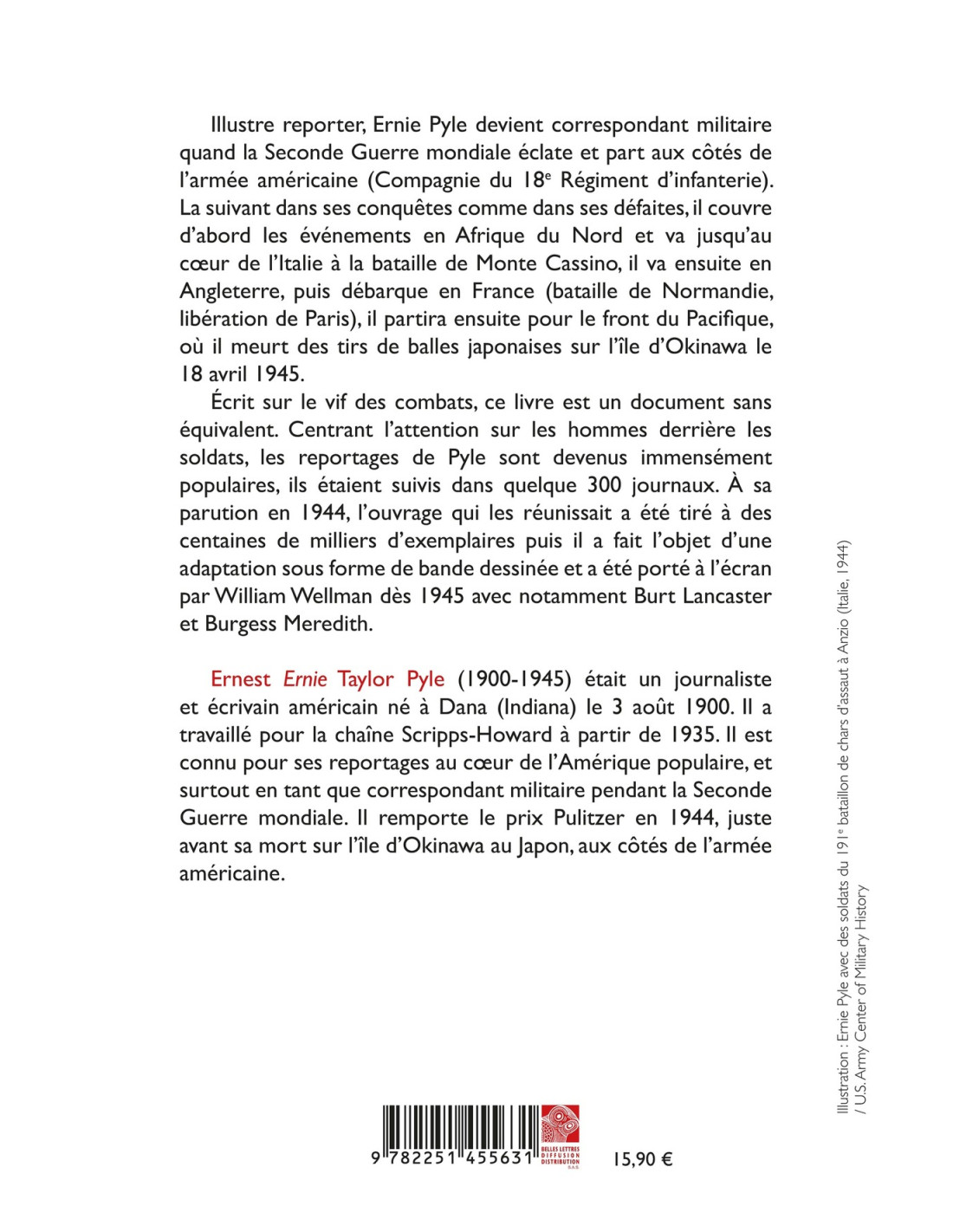 Illustre reporter, Ernie Pyle devient correspondant militaire quand la Seconde Guerre mondiale éclate et part aux côtés del’armée américaine (Compagnie du 18e Régiment d’infanterie). La suivant dans ses conquêtes comme dans ses défaites, il couvre d’abord les événements en Afrique du Nord et va jusqu’au coeur de l’Italie à la bataille de Monte Cassino, il va ensuite en Angleterre, puis débarque en France (bataille de Normandie, libération de Paris), il partira ensuite pour le front du Pacifique, où il meurt des tirs de balles japonaises sur l’île d’Okinawa le 18 avril 1945.
