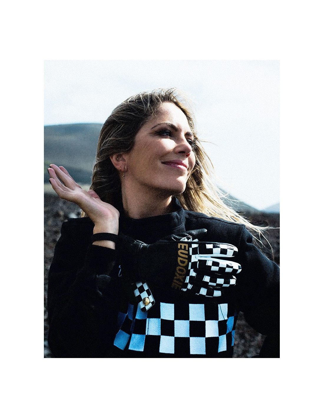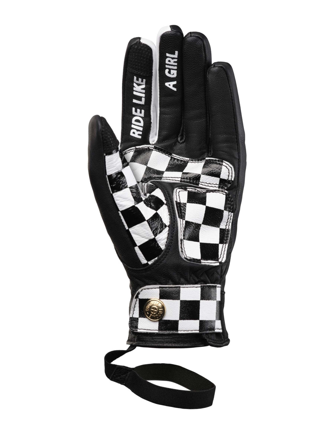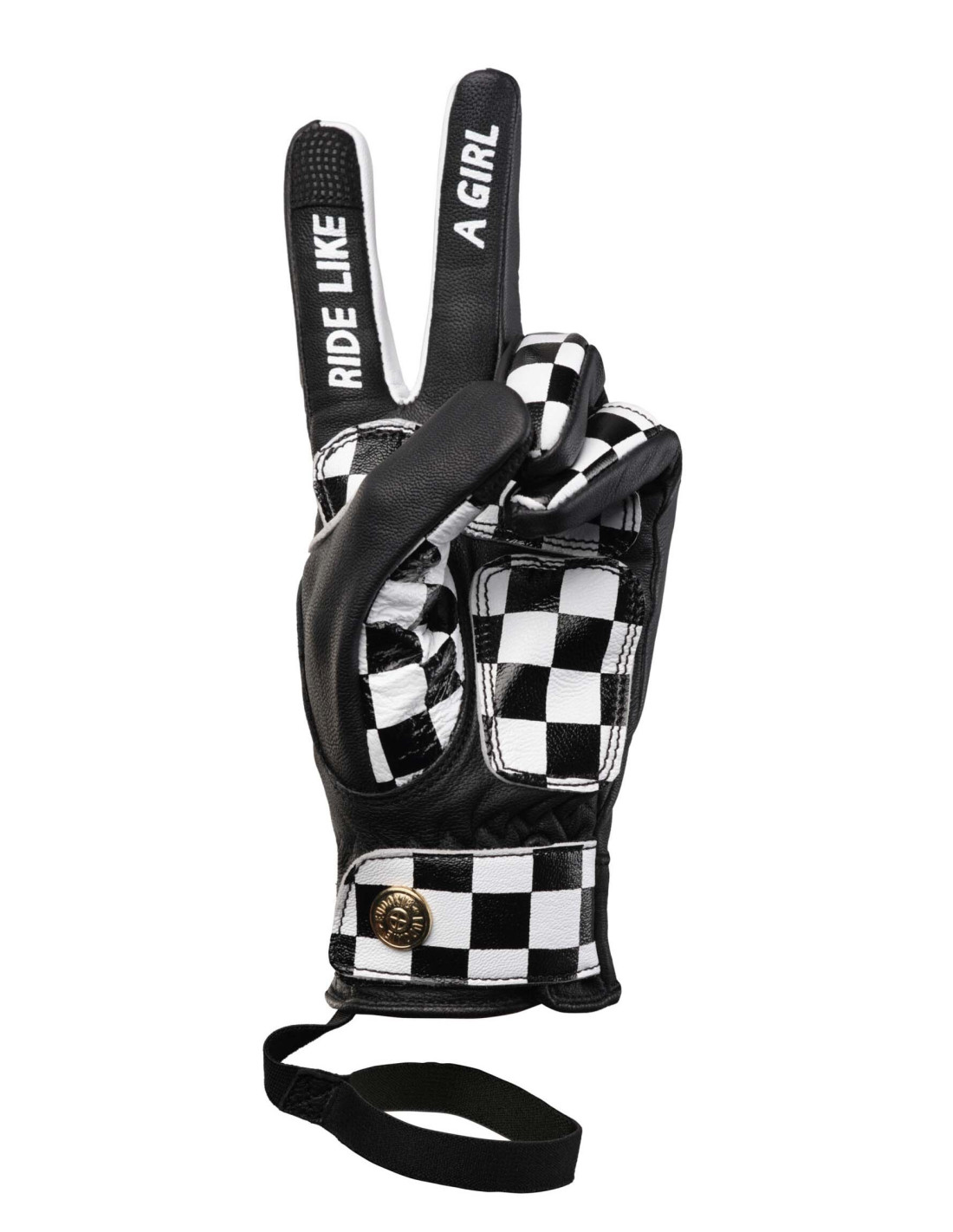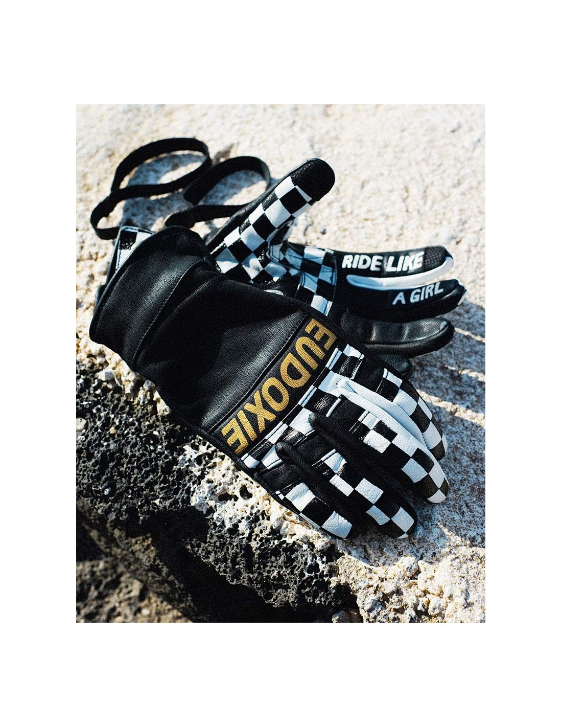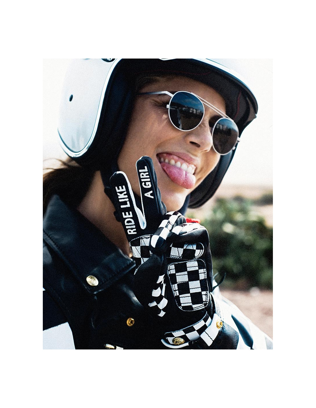 Sur la main gauche, celle utilisée pour faire le fameux “V” qui permet de saluer les autres motards, nous avons voulu rajouter notre touche “Eudoxie”. Vous pourrez y lire notre fameuse phrase “Ride Like a Girl” comme une signature de notre crew, et une salutation lorsque tu roules !