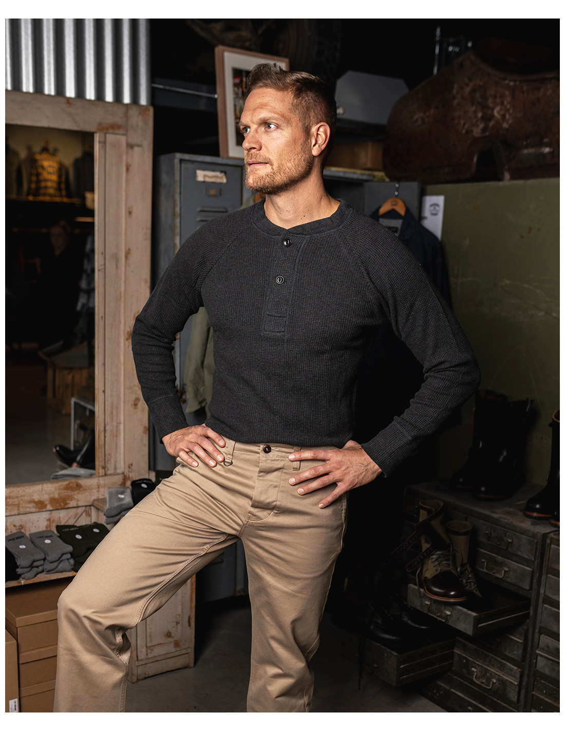 Un henley en coton épais, parfait pour rester au chaud tout l’hiver avec style et authenticité.