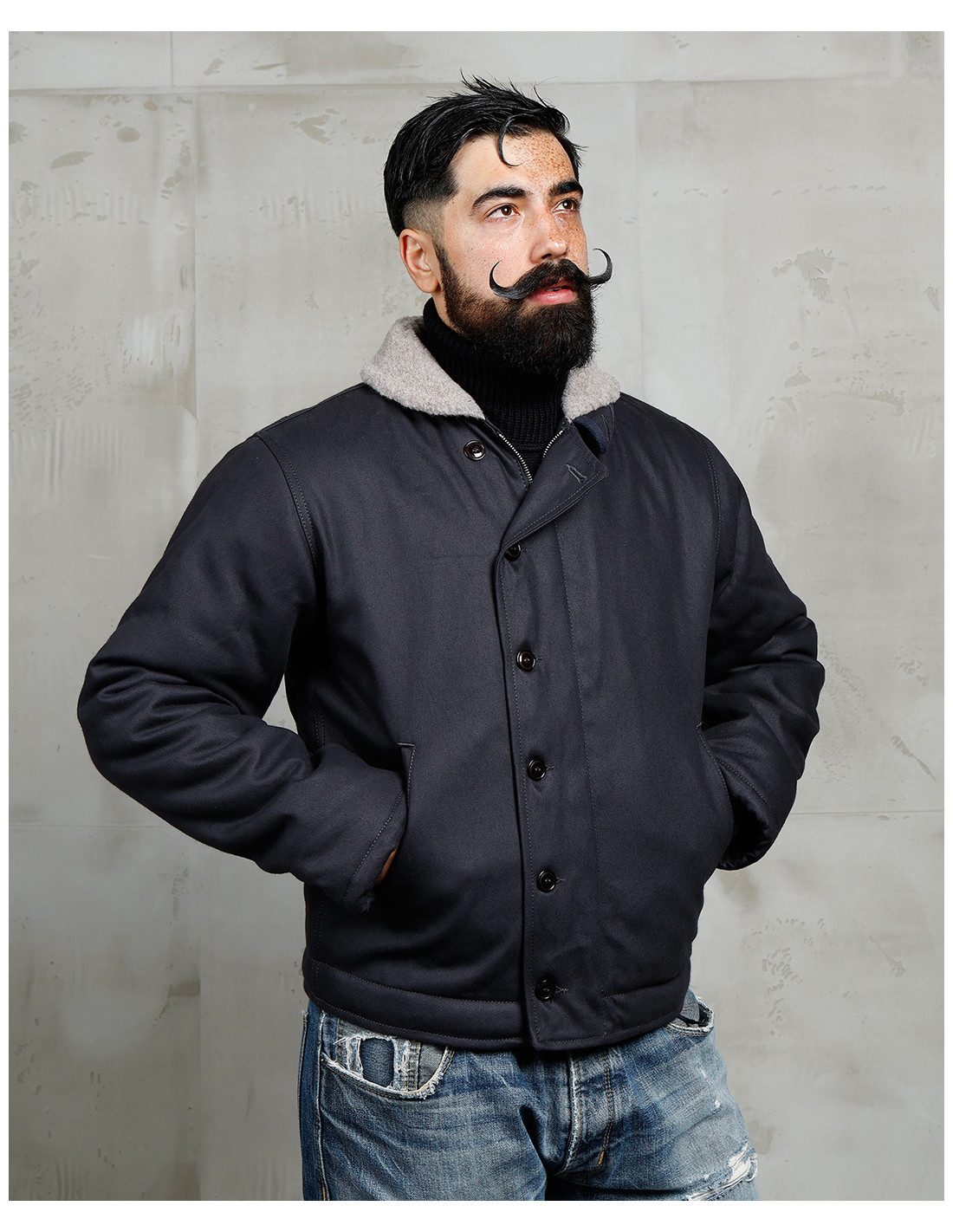 La N1 Deck Jacket est la veste de pont utilisée par la marine américaine, l'US Navy, en 1944. Il s'agit ici d'une réplique conforme en tout point avec l'originale.