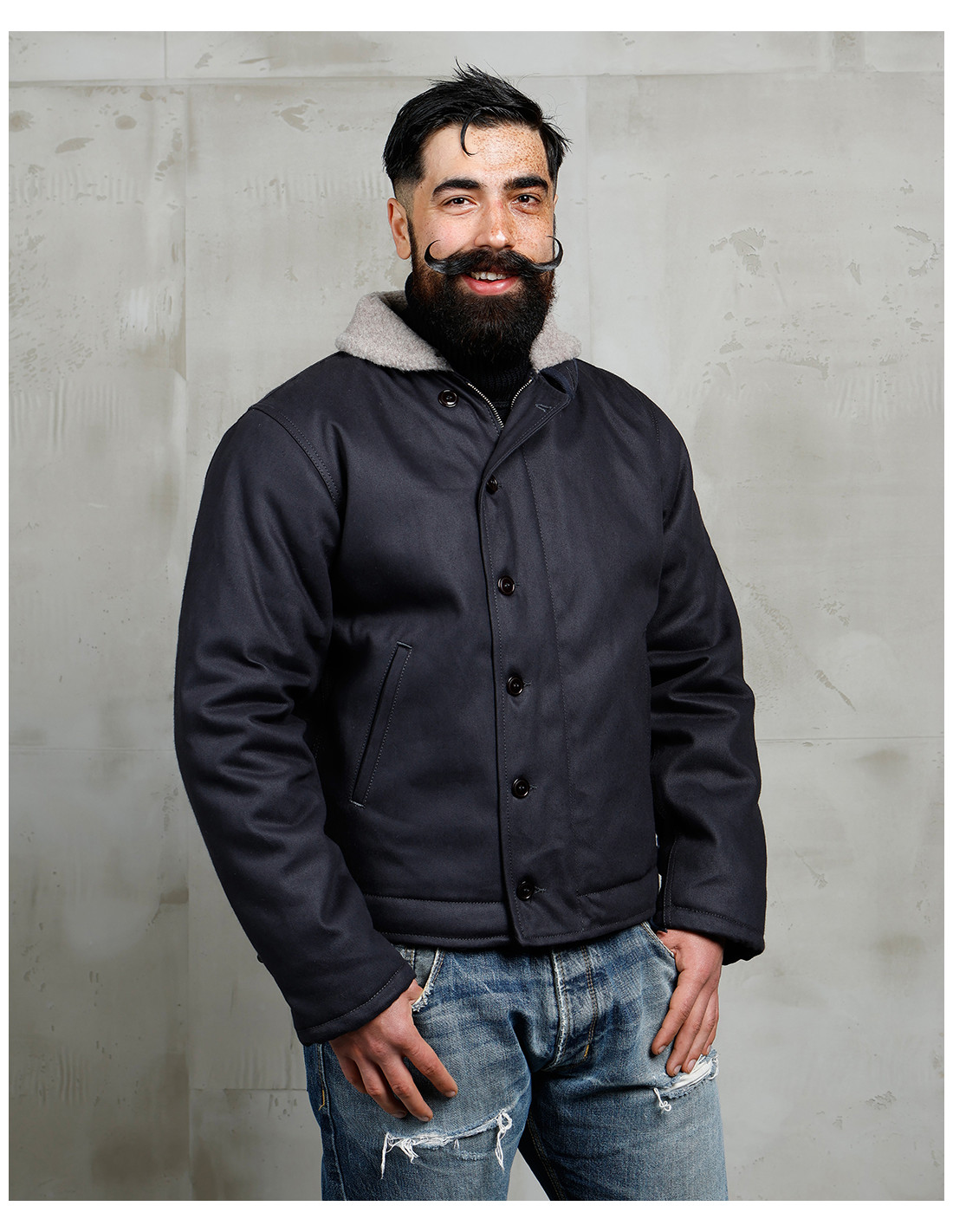 Blouson de pont USN 1944 N1 Deck Jacket Elephant Skin Asphalt - Pike Brothers