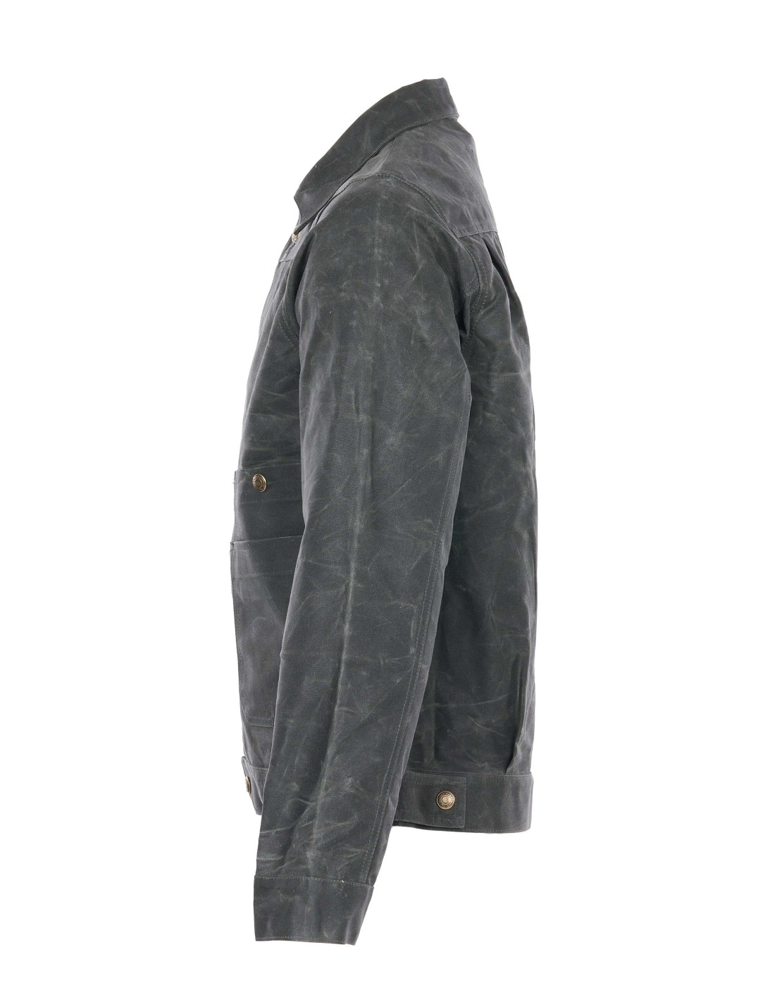 Fabriqué à partir du tissu Armor Cloth cette veste est pour chaque saison de l’année. Armor Cloth est un tissu de coton ciré très rigide mais robuste. Une fois utilisé pour protéger la cargaison de voitures et de camions au début du 20ème siècle, il était seulement une question de temps jusqu’à ce qu’il a également été utilisé pour les vêtements de plein air. Il est robuste, hydrofuge et offre une grande longévité. Mais soyez conscient que ce tissu doit être cassé dedans ! Une fois apprivoisé, le tissu offre un grand confort et récompense le propriétaire avec une grande patine au fil du temps.