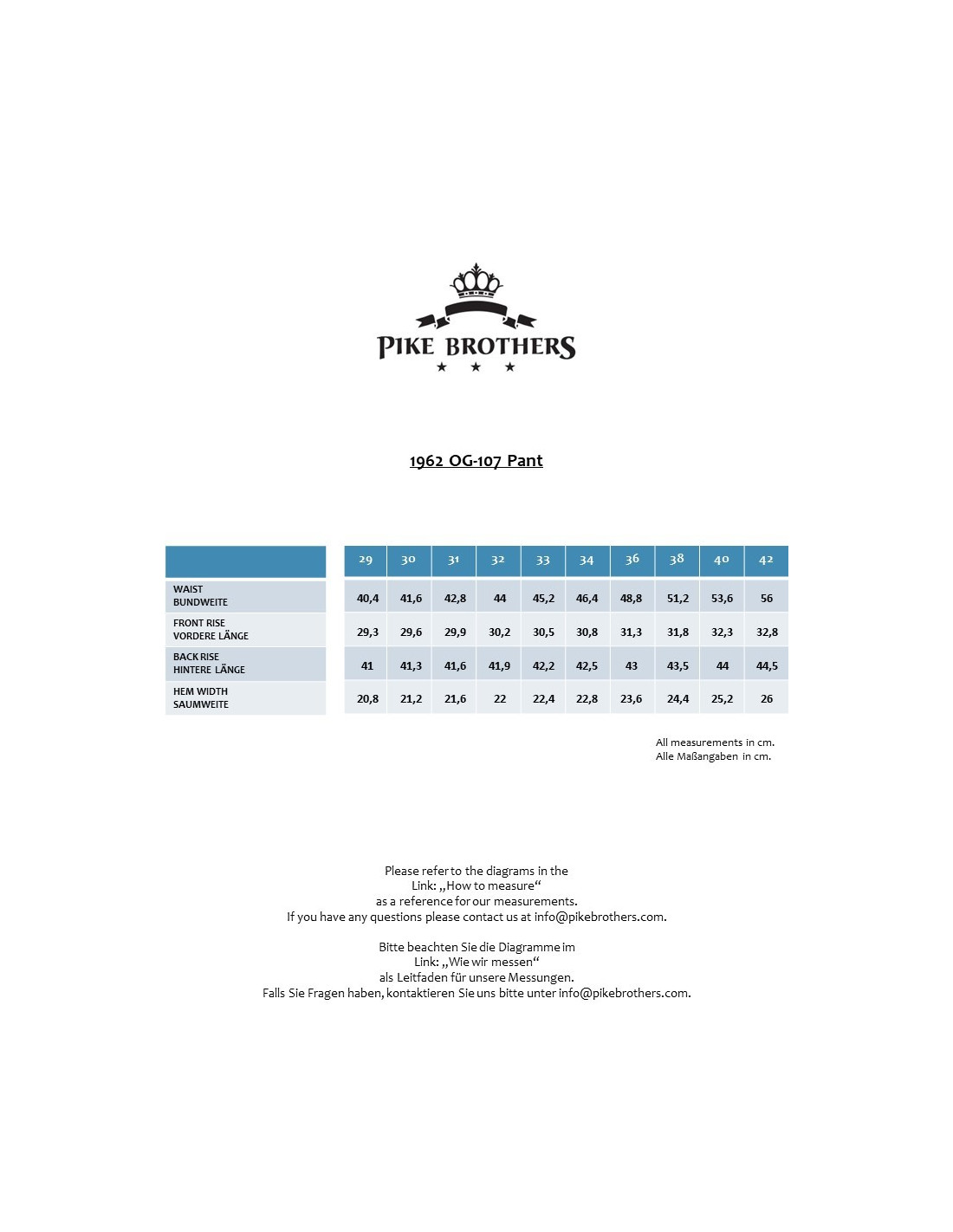 En raison de son utilisation quotidienne et de sa coupe confortable, l'OG-107 fait partie intégrante de la collection Pike Brothers.