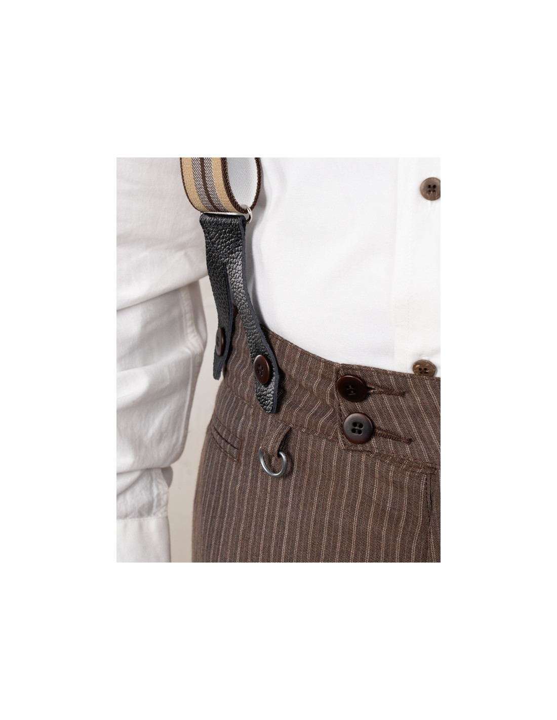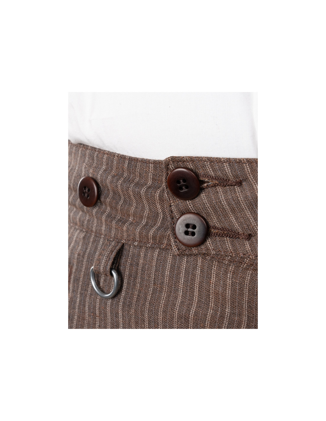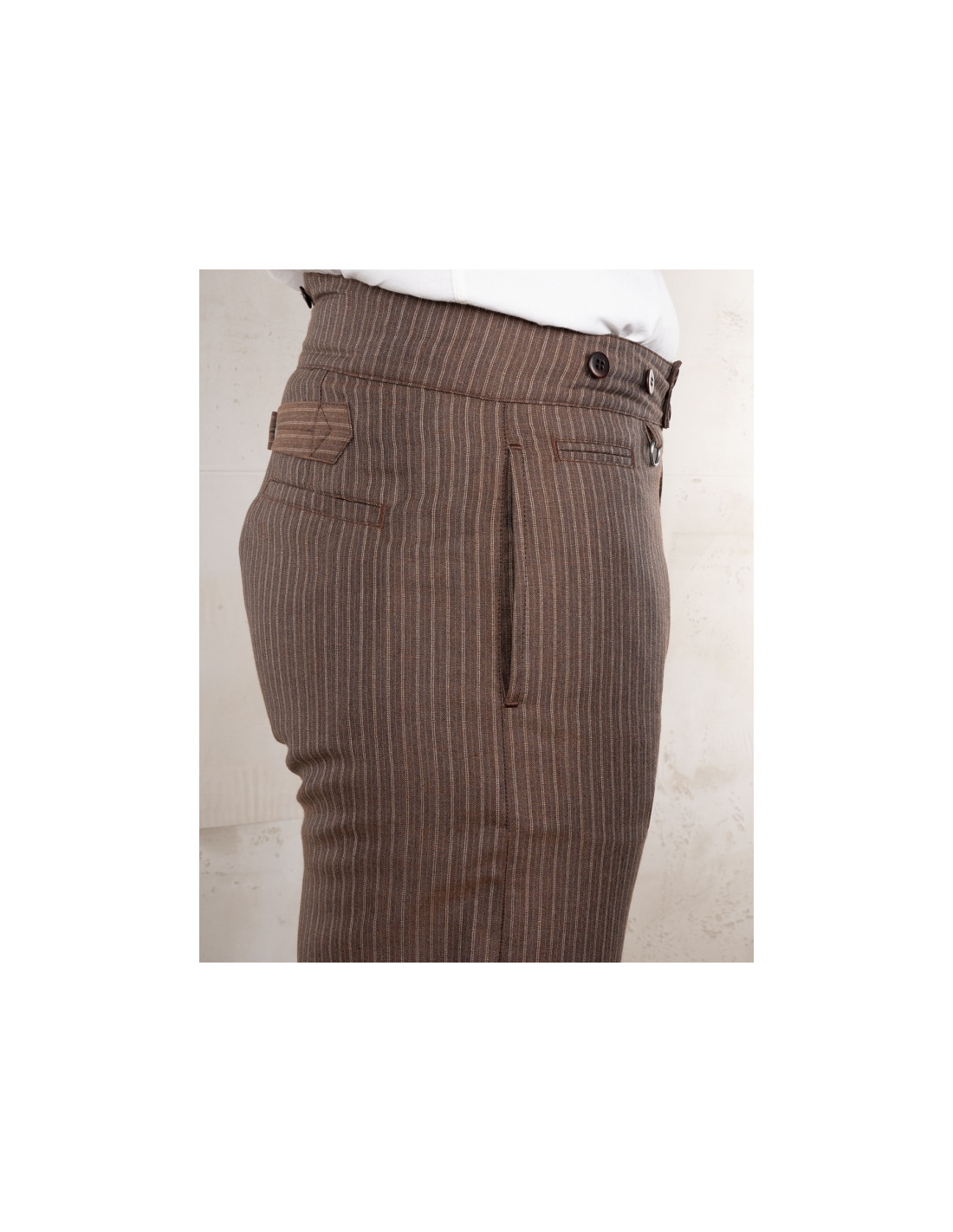 Confectionné dans un tissu de 250 g/m², composé de 55 % lin et 45 % laine, et tissé au Portugal, il combine résistance, respirabilité et confort thermique. Prélavé, il ne rétrécit pas au lavage. Longueur standard : 34.