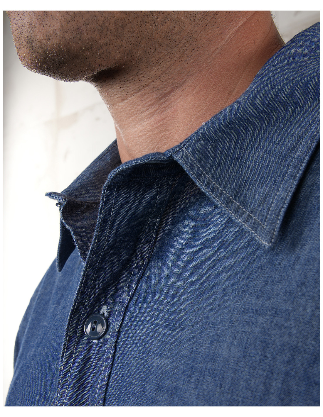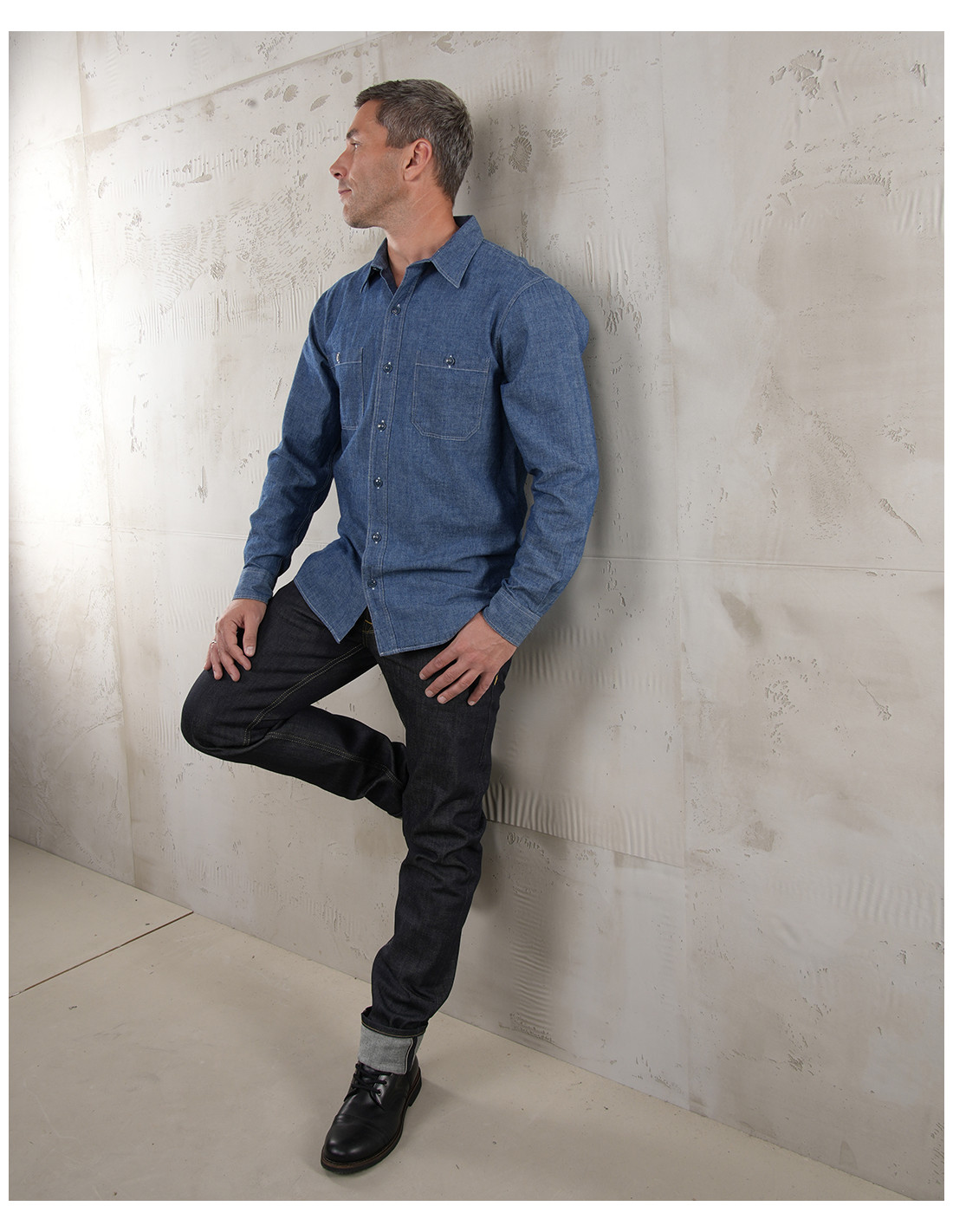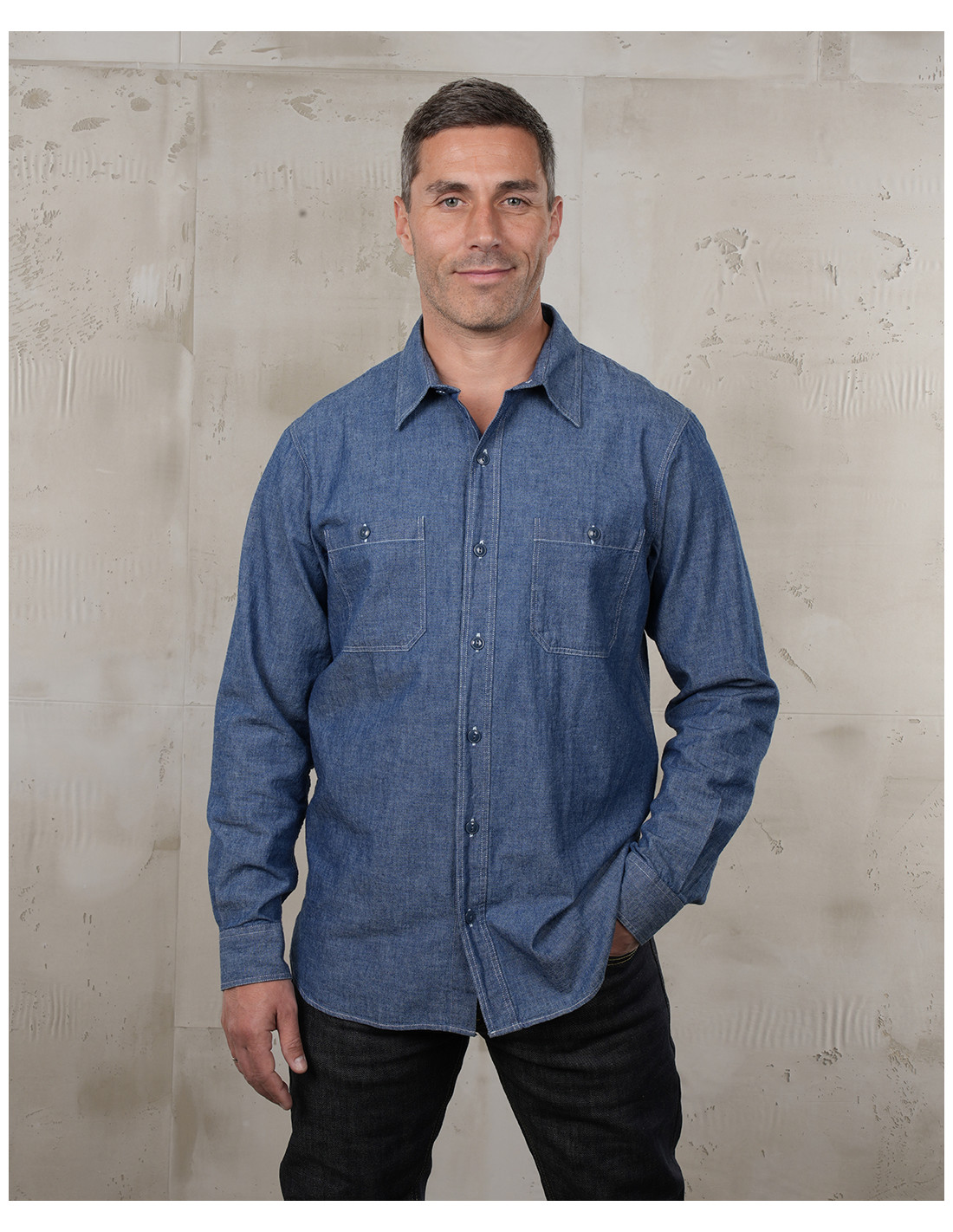Une chemise chambray militaire iconique, inspirée de l’équipement original de l’U.S. Navy.