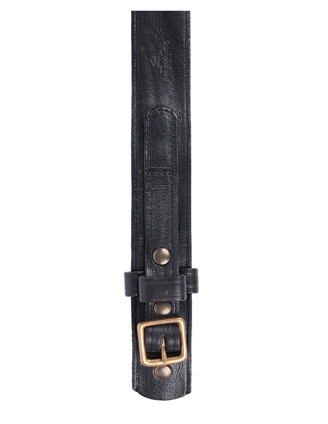 La ceinture robuste est fabriqué en cuir de vache de haute qualité. La boucle n’est pas échangeable.