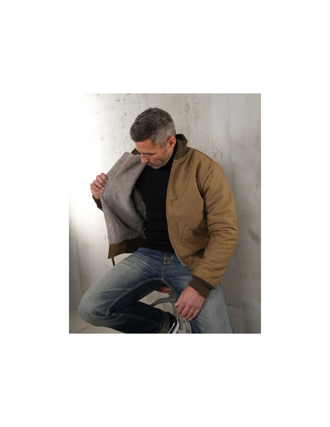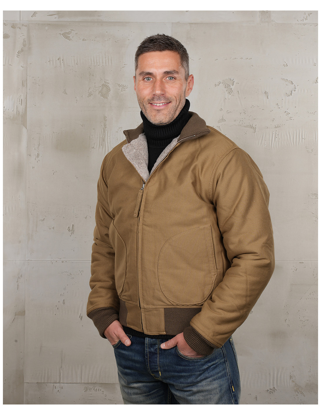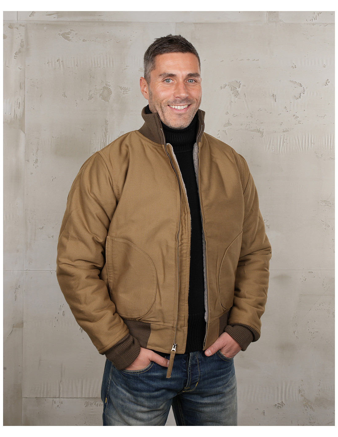 - La coupe emblématique des blousons Deck Zipper de la marine américaine ww2.