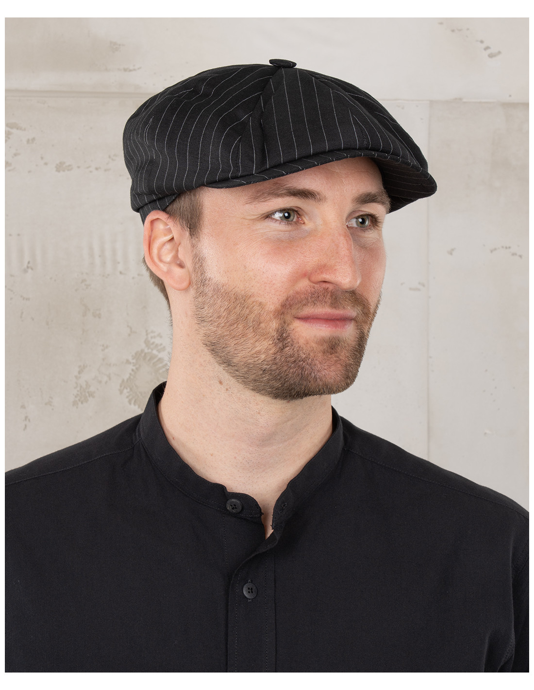 Ce pantalon d'été est taillé dans un tissu, mi-lin mi-laine. La coupe classique et le mélange laine/lin dans le tissu le rendent confortable à porter, surtout pendant les saisons chaudes. Il est noir avec de fines rayures grises. Il rappelle les costumes de Peaky Blinders.