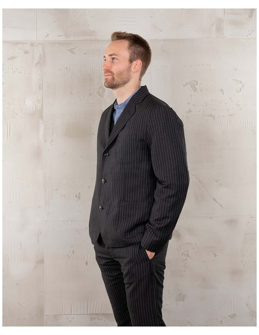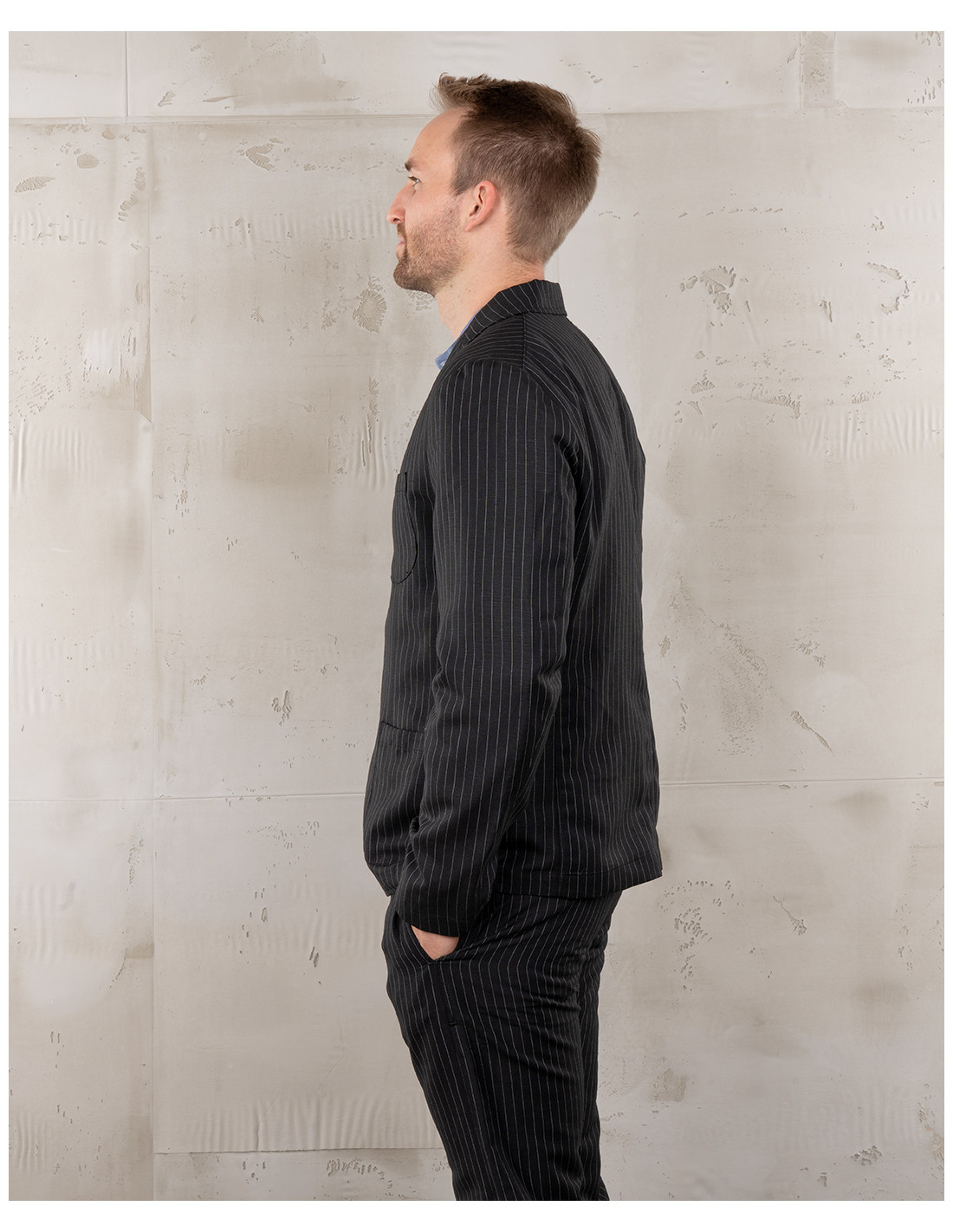 Inspirée des vêtements de travail emblématiques des années 1920 et 1930, la veste 1927 Harvester incarne l’authenticité et la fonctionnalité des pièces d’époque. Sa coupe confortable et sa doublure en font une veste idéale pour un port quotidien, en toutes saisons. Elle est dotée de trois poches frontales, pratiques et fidèles à l’esprit workwear. Confectionnée dans un tissu exclusif tissé au Portugal, d’un poids de 200 g, elle associe 45 % de laine et 55 % de lin pour offrir un équilibre parfait entre légèreté, respirabilité et durabilité. Une veste au style intemporel, directement héritée du monde du travail, revisitée pour un vestiaire contemporain.
