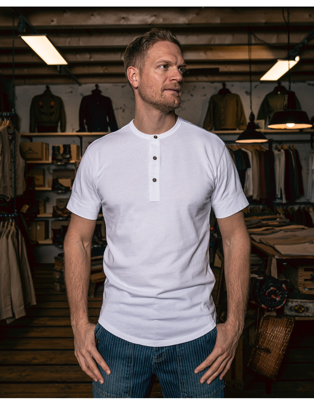 1927 Henley Shirt Short Sleeve Pure White – T-shirt henley manches courtes