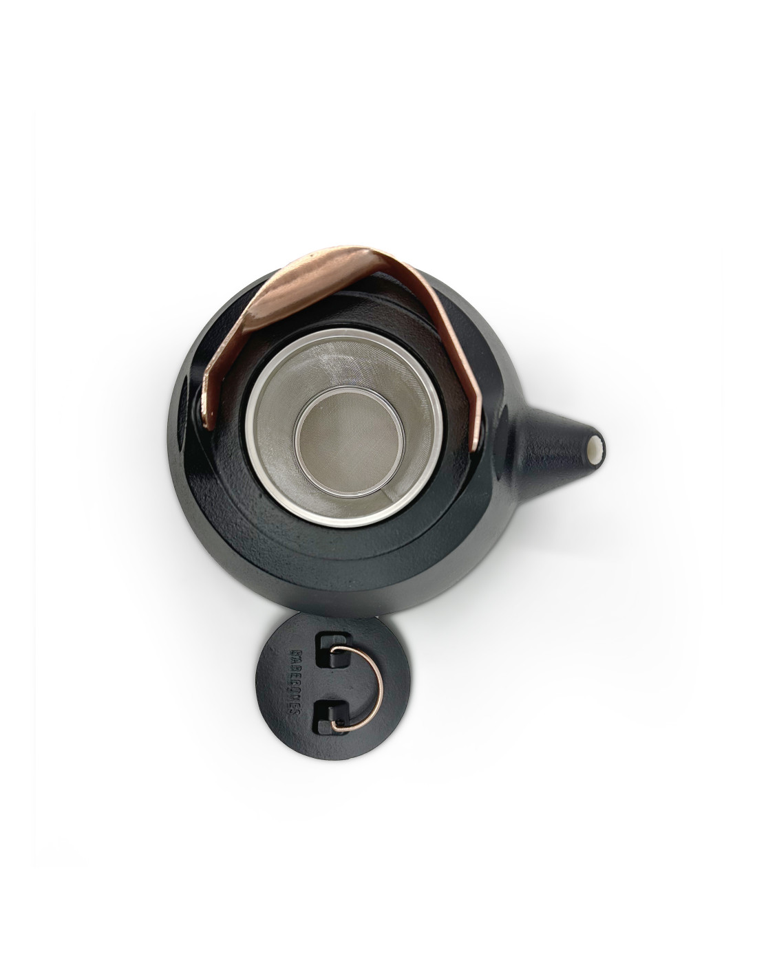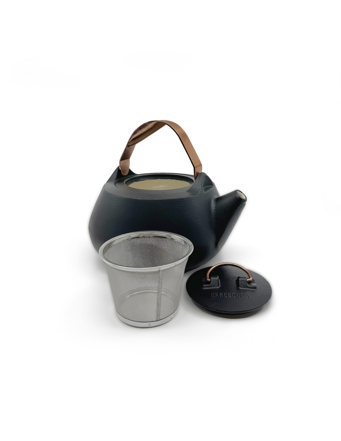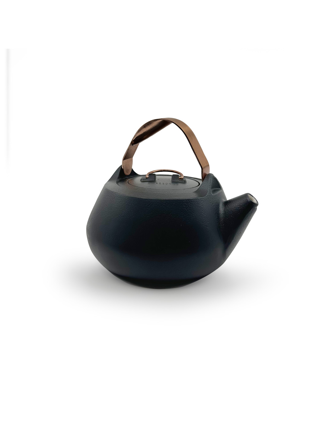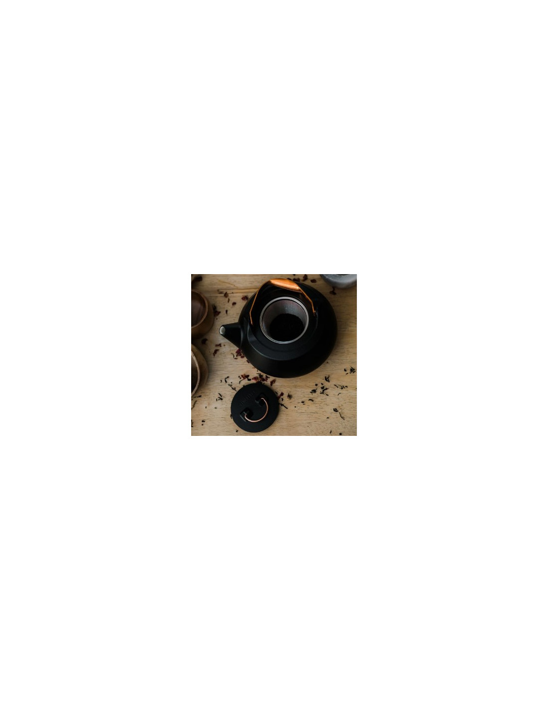 Théière en acier émaillé avec la bordure en cuivre finie à la main. Chaque pièce est unique..